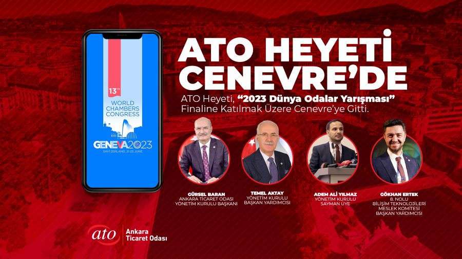 Ankara Ticaret Odası (ATO) Yönetim Kurulu Başkanı Gürsel Baran başkanlığındaki ATO Heyeti, Milletlerarası Ticaret Odası (ICC) çatısı altında faaliyet gösteren ve küresel anlamda Odaların temsilciliğini üstlenen Dünya Odalar Federasyonu’nun (WCF) “2023 Dünya Odalar Yarışması” finaline katılmak üzere İsviçre kendi Cenevre’ye gitti. ATO’nun “ATONET Üye Hizmet Platformu”23 Haziran’da Cenevre’de gerçekleştirilecek olan finalde ABD ve Çin Odalarıyla “En İyi Oda Sistemi İnovasyon Projesi” kategorisinde yarışacak. ATO Yönetim Kurulu Başkanı Gürsel Baran, “Cenevre’den ödülle döneceğimize inanıyoruz, bunu istiyoruz” dedi.