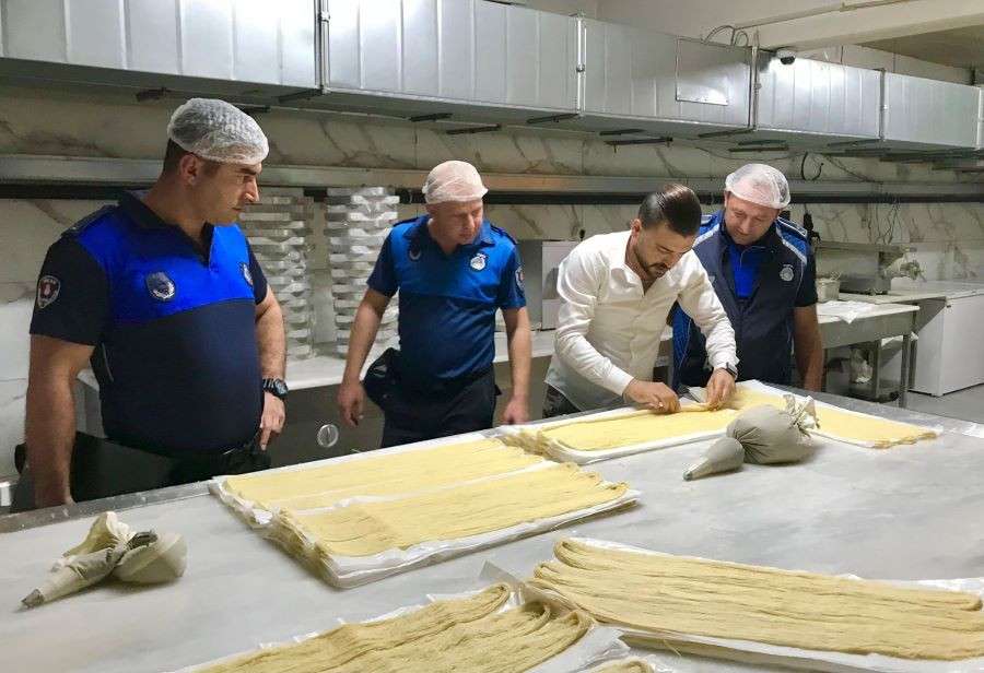 Bölgedeki tatlı gıda üreticilerinin hijyen koşullarına ve halk sağlığına uygun şartlarda çalışmasını sağlamaya yönelik yapılan denetimlerde, vatandaşın huzurlu ve sağlıklı bir bayram geçirmesi amaçlanıyor.Denetlemeler sırasında imalathaneleri temiz olan iş yeri sahiplerine zabıta ekipleri tarafından teşekkür edilirken, kurallara uymayanlara gerekli işlemler yapıldı.
