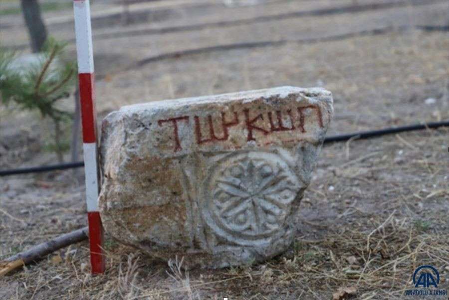 Konya'nın Karatay ilçesine bağlı Yağlıbayat Mahallesi'ndeki Savatra Antik Kenti'nde yürütülen kazı çalışmalarında, "Türk" ibaresi yer alan yazıt bulundu.