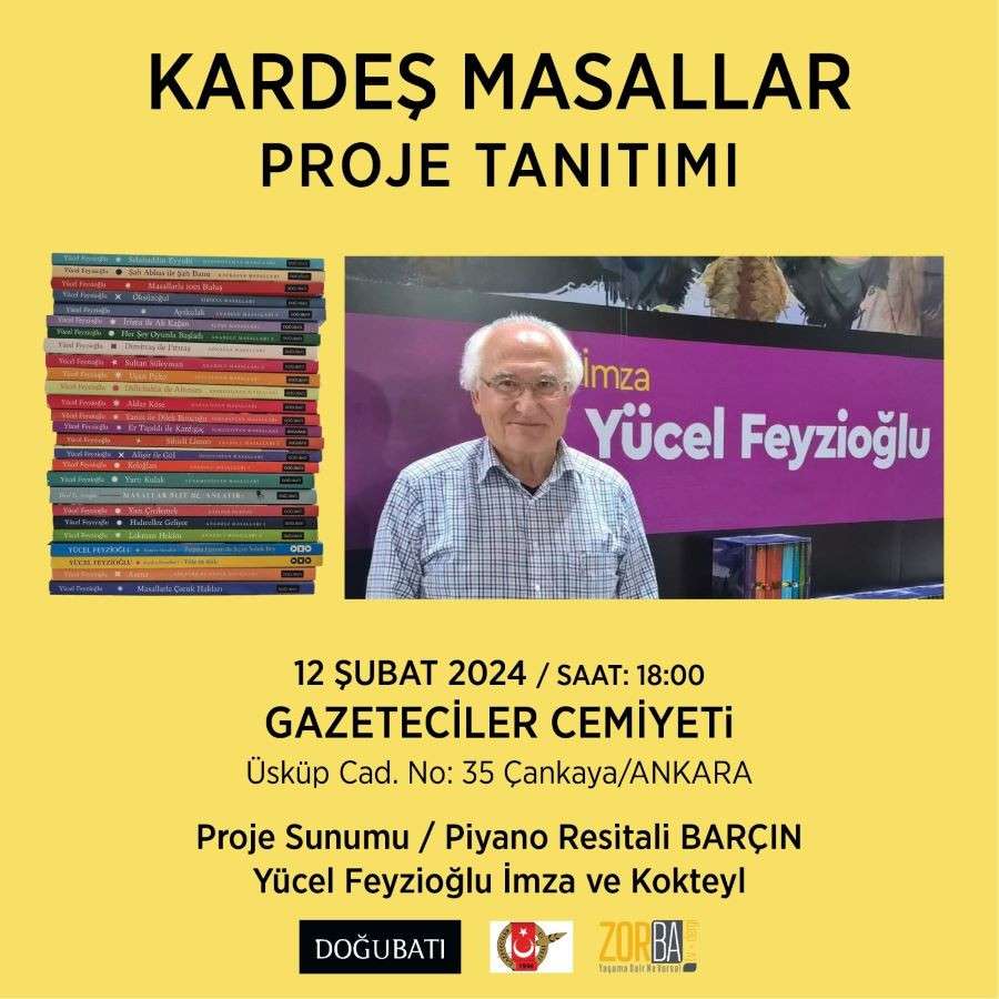 Kardeş Masallar projesinin ulusal basın tanıtım toplantısı, Gazeteciler Cemiyeti ve Zorba TV-dergi medya sponsorluğunda, Doğu Batı Yayınları tarafından Ankara’da 12 Şubat 2024 tarihinde düzenlenecek. Büyülü masal yolculuğu, Türk kültürünü dünya çocuklarına taşımaya devam ediyor.