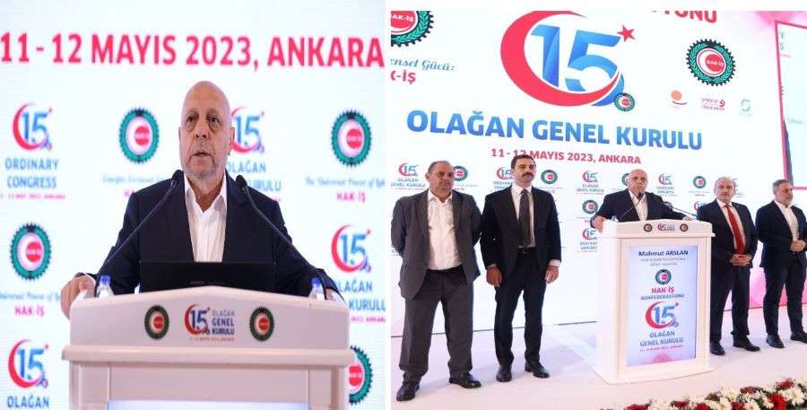 HAK-İŞ Konfederasyonu 15. Olağan Genel Kurulu 11-12 Mayıs 2023 tarihleri arasında Ankara’da toplandı. Birinci gün, açılışına Cumhurbaşkanı Recep Tayyip Erdoğan’ın da katıldığı Genel Kurulun ikinci günü yapılan seçimler sonunda Genel Başkan Mahmut Arslan, yeniden HAK-İŞ Genel Başkanlığı’na seçildi.